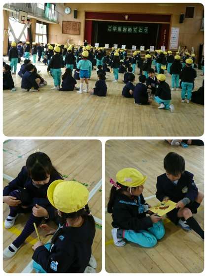 1年生の子ども達は、加賀幼稚園の年長さんを見送った後に、名残惜しそうに手を振って「ばいばい」をしていました。