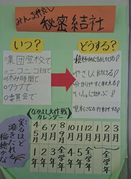 6年生の子ども達が、この1年間で取組んできた「みんな仲良し 秘密結社」。