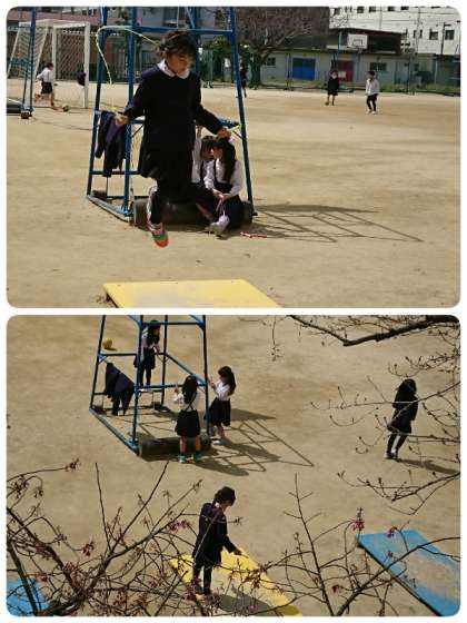 朝の陽ざしが暖かく、いきいきに来ている子ども達は運動場で元気に遊んでいます。