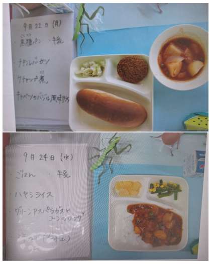 9月18(木)〜22日(月)、24日(水)の給食の献立の