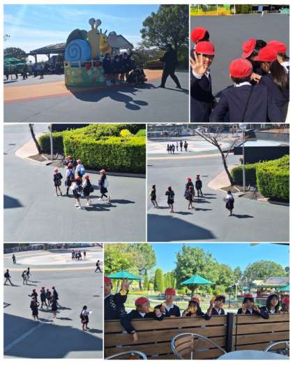 クラス写真を撮って、これから班で楽しいアトラクションに挑戦です。