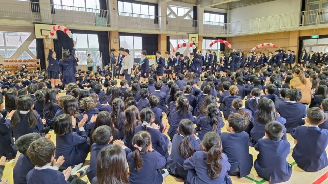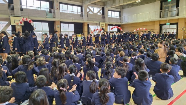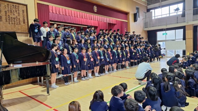 その後、それぞれの学年からお祝いの歌や、演奏などが披露され、6年からも旅立ちの
