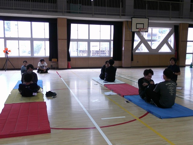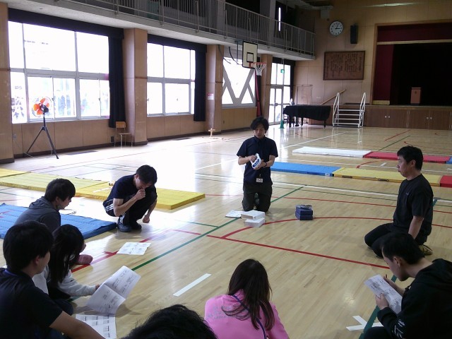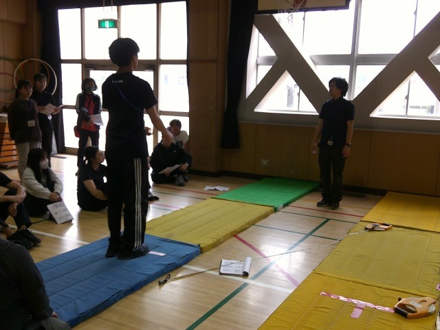 教職員で、正確に測定することができるよう、体力テストの研修を行いました。