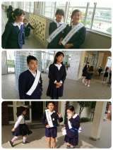 さっそく15分休みに「正しく歩き隊」が活躍していました。タスキをかけて休み時間の...