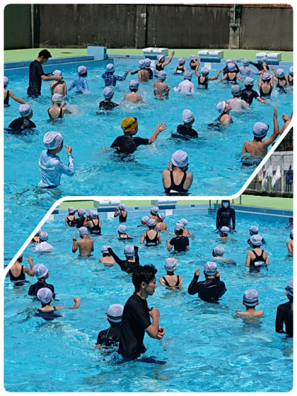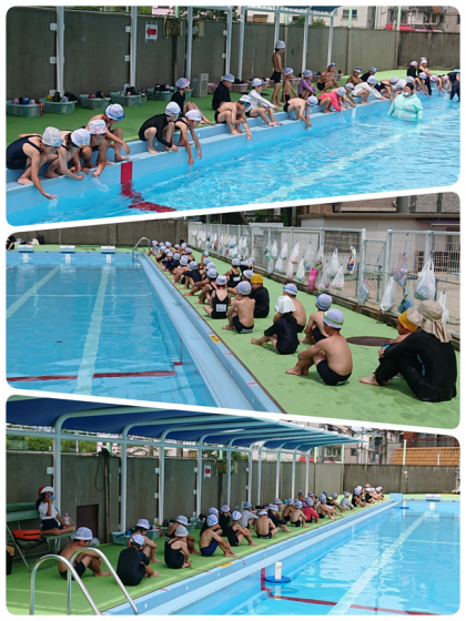 今日も絶好のプール日和です。 みんな元気に注意を守りながら水泳の授業...