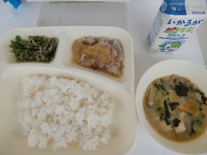 4月10日の給食 公開日 2019/04/10 更新日 2019/04/10 お知らせ ≪今日の献立≫ *ごはん *豚肉のおろしじょうゆかけ *みそ汁 *じゃこピーマン *牛乳 今日は和食メニューでした。 じゃこピーマンは、苦くないよう調理されていたので、食べやすかったようです。最初に減らした児童も、おかわりをしにきていました。 いいね(0)