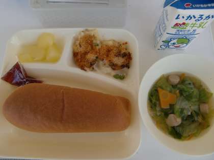 4月16日の給食 公開日 2019/04/16 更新日 2019/04/16 お知らせ ≪今日の献立≫ *コッペパン *マカロニグラタン *レタスのスープ *りんご(カット缶) *いちごジャム *牛乳 今日の1年生の様子です。 一人一人食器を持って、6年生がパン、小おかず2つを順番によそってくれる列に並びます。 全部よそってもらったら、両手でそーっと自分の席まで運んでいきます。 給食参観まであと10日。少しずつステップアップしてほしいと思います。 いいね(0)