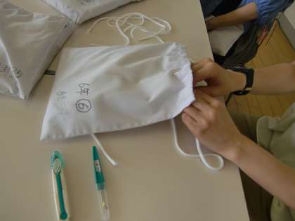 5〜6年生から集まったエプロンをひとつひとつ確かめて、帽子のゴムの入れ替えやエプロンのボタン付け、アイロンがけをしてくださいました。
