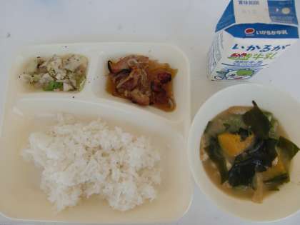 6月13日の給食 公開日 2019/06/13 更新日 2019/06/13 お知らせ ≪今日の献立≫ *ごはん *鶏肉の甘辛焼き *みそ汁 *キャベツの赤じそあえ *牛乳 今日のみそ汁には、夏が旬のかぼちゃとオクラが入っていました。かぼちゃが大きめに切られていて甘く、おいしかったです。 3年生と一緒に給食を食べている教育実習の先生に給食の感想を聞くと、「おいしいです!懐かしいです!!」とおっしゃっていました。もりもり食べてくれるので、児童もつられてたくさん食べています! いいね(0)
