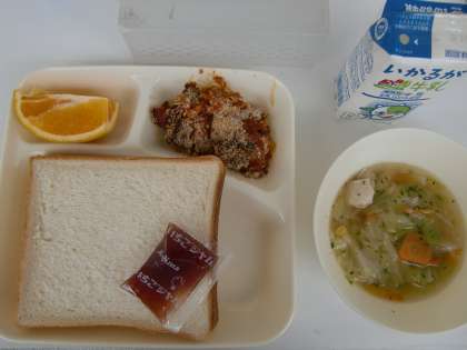 7月10日の給食 公開日 2019/07/10 更新日 2019/07/10 お知らせ ≪今日の献立≫ *食パン *かぼちゃのミートグラタン *スープ *オレンジ *いちごジャム *牛乳 ミートグラタンには、甘いかぼちゃがたっぷり入っていました。とても人気で、2年生ではおかわりの列ができていました。 いいね(0)