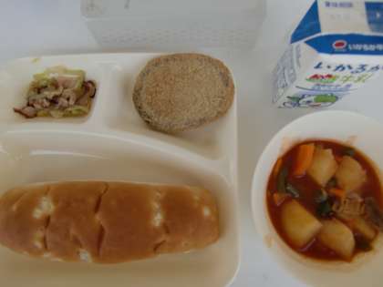 7月12日の給食 公開日 2019/07/12 更新日 2019/07/12 お知らせ ≪今日の献立≫ *おさつパン *チキンレバーカツ *ケチャップ煮 *たことキャベツのソテー *牛乳 チキンレバーカツは、カレー味でレバーのくさみがなく、食べやすいです。レバーには、貧血を予防する鉄や、皮ふや粘膜をじょうぶにするビタミンAがたくさん含まれています。さくっと揚がっていて、児童に人気でした。 いいね(0)