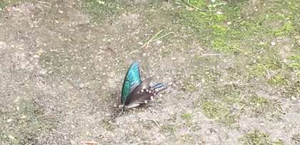 ツバメが電線で休憩しています。アオスジアゲハもとても大きいです。