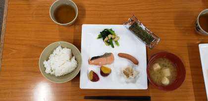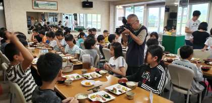 食事係が中心となって準備をしました。徐々に要領がよくなり、50分に「いただきます」をしました。