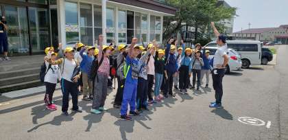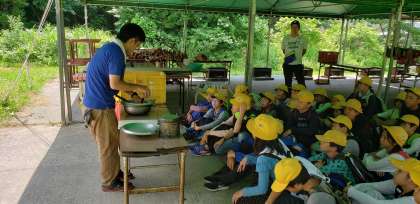 飯盒炊飯に向かって出発。「頑張っていこうよ!」「オー!」