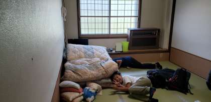 荷物整理を住ませ部屋から出野先生の点検を受けます。合格をした部屋は、宿舎の清掃(洗面所等)もしました。