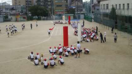 今日は3回目の運動会全体練習を行いました。応援団の練習を中心に行いました。大きな声が運動場全体に響きわたっていました。