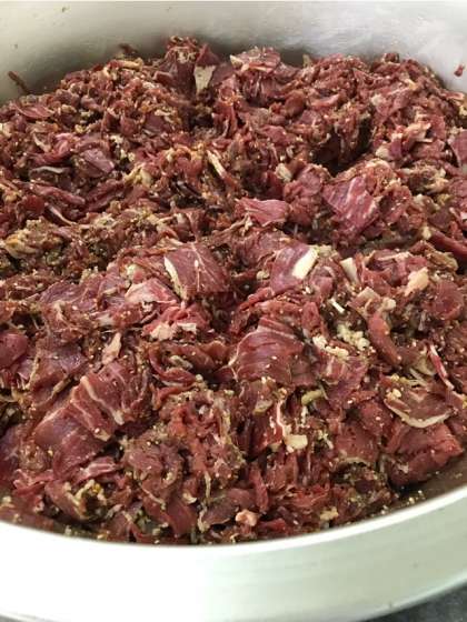 (写真中:下味をつけた牛肉)