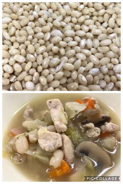 今日の給食の大おかずの「鶏肉とてぼ豆のスープ」は、鶏肉と、食物繊維と鉄が豊富に含まれているてぼ豆や、野菜が入った洋風の煮ものでした。素材の風味がよく感じられる、優しい味のスープ煮です。