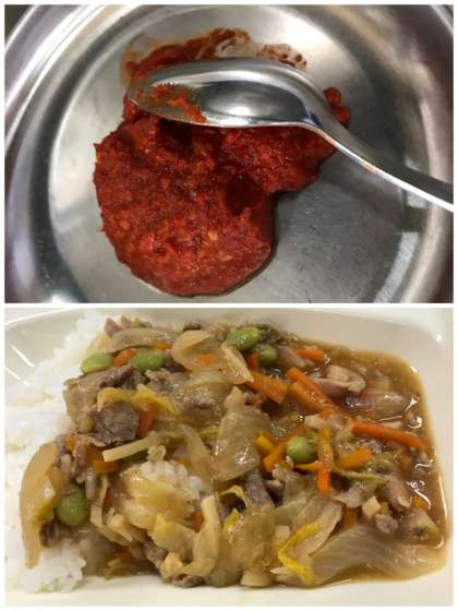 (写真2:ピリ辛丼に入れるトウバンジャン)