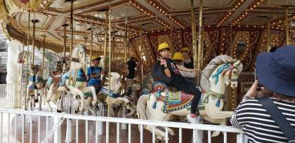 ハード系とソフト系に分かれ、アトラクションを楽しんでいます。メリーゴーランド組です。
