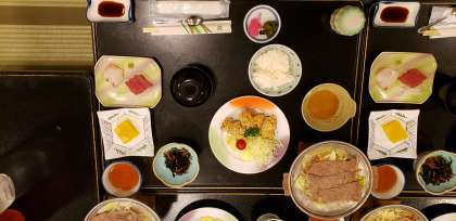 夕食 公開日 2019/10/08 更新日 2019/10/08 お知らせ 一人一人ずつのお膳に盛り付けがされています。食事係の出番がないほど準備がされています。みんなそろって「いただきます」 いいね(0)