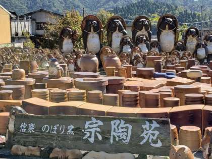 狸の置物だらけです 公開日 2019/10/09 更新日 2019/10/09 お知らせ 宗陶苑さんは、NHKの朝のドラマ「スカーレット」のロケ現場になりました。のぼり窯は、日本でも最大級のもので現役で活動しています。長さ30m,幅15m,高さ3.5mです。 いいね(0)