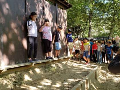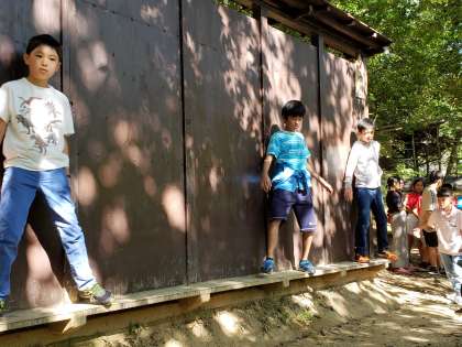 二つ目の修行は、塀横歩きです。これも全員合格です。