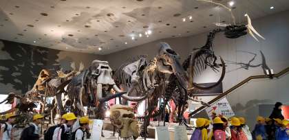 なかよし遠足3 公開日 2019/10/24 更新日 2019/10/24 お知らせ 雨のかからない自然史博物館のポーチで昼食をとりました。6〜7校がシートを広げて、お弁当広場に変身です。 自然史博物館の見学は、学年毎です。大きなアロサウルスの骨格標本やナウマンゾウの標本にみんなビックリです。ゆっくり時間をかけてしっかり見ていました。 いいね(0)