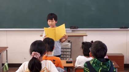 物語の中で一番心に残った場面を中心に、自分がじんざだった場合や、自分が男の子だった場合を想像して、文章に書き出した感想を発表できました。