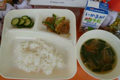 今日の給食の「ホイコウロー」は、テンメンジャンがよく感じられ、豚肉と野菜の相性抜群な一品でした。どのクラスもしっかりと食べられていました。