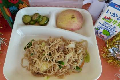 12月4日(水)の給食 公開日 2019/12/04 更新日 2019/12/04 お知らせ 《今日の献立》 *黒糖パン *オイスターソース焼きそば *きゅうりの中華あえ *りんご 今日の給食の「オイスターソース焼きそば」は、オイスターソースとテンメンジャンの風味が感じられる、児童に大人気の一品でした。どのクラスも完食でした。 (写真:今日の給食) いいね(0)