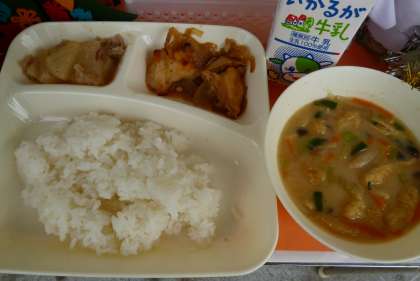12月6日(金)の給食 公開日 2019/12/06 更新日 2019/12/06 お知らせ 《今日の献立》 *ごはん *鶏肉の甘辛焼き *みそ汁 *だいこんの煮もの *牛乳 今日の給食の「だいこんの煮もの」は、だいこんを豚肉とだしで煮て味付けをしてから、でんぷんでとろみをつけています。食べやすく、ごはんのすすむ味で、児童のみなさんの「おいしい!」の声がたくさん聞かれました。 (写真1:今日の給食) (写真2:だいこんの煮もの) いいね(0)