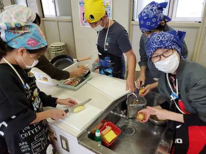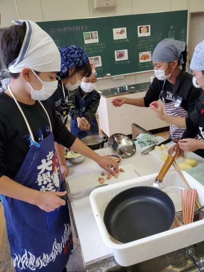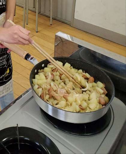 じゃがいもの皮むき担当、ベーコンやウインナーを切る担当、玉ねぎを細かく切る担当などに分かれて、手際よく作ることが出来ました。