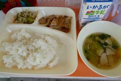 12月13日(金)の給食 公開日 2019/12/13 更新日 2019/12/13 お知らせ 《今日の献立》 *ごはん *焼き肉 *五目汁 *きゅうりともやしのおひたし *牛乳 今日の給食の「焼き肉」は、下味をつけた豚肉と、たまねぎを混ぜ合わせて焼き物機で焼いています。ごはんのすすむ甘辛い味付けで、児童に人気の一品でした。「肉といっしょに焼いている、たまねぎの味が絶品!」と伝えてくれる児童もいました。 (写真1:今日の給食) (写真2:焼き肉) いいね(0)
