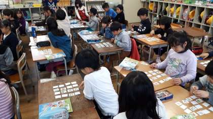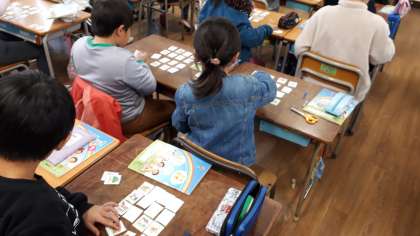 自分で並べかえた動物の名前が呼ばれるとカードをひっくり返し、ビンゴになると大興奮で盛り上がっていました。