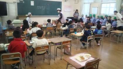 粉浜幼稚園 給食参観 公開日 2020/01/15 更新日 2020/01/15 学校行事 粉浜幼稚園のみなさんが1年生の給食の様子を見に来てくれました。 配膳の仕方や食べている様子を真剣に見学していました。 いいね(0)