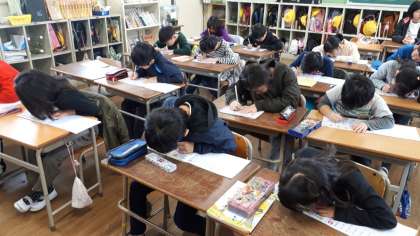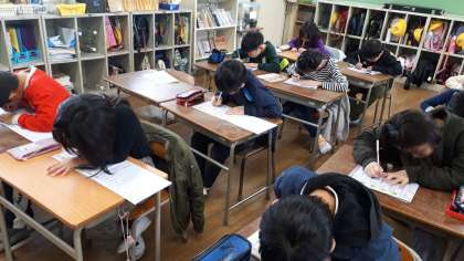 書き順と熟語を確認したら、自分のペースで書き始めます。