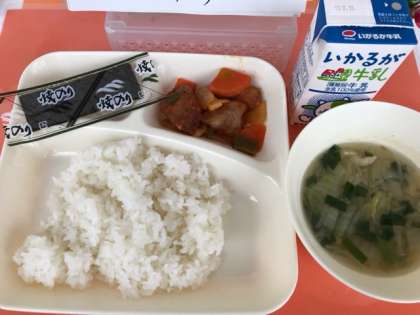 1月27日(月)の給食 公開日 2020/01/27 更新日 2020/01/27 お知らせ 《今日の献立》 *ごはん *酢豚 *中華スープ *焼きのり *牛乳 今日の給食の「酢豚」は、下味をつけた豚肉にでんぷんをまぶし、油であげます。炒めた野菜に味付けをし、揚げた豚肉を加えています。児童にとても好評な一品でした。 (写真1:今日の給食) (写真2:酢豚) いいね(0)