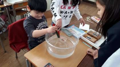 理科の時間に、2つの磁石を近づけたときにどんな反応が起こるかという実験をしました。