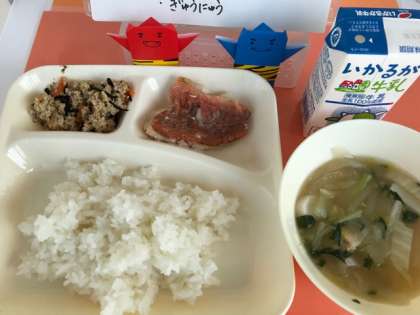 今日の給食の「あかうおのしょうゆだれかけ」は、塩で下味をつけて焼き物機で焼いたあかうおに、甘辛いタレをかけています。ごはんにとてもよく合い、児童の皆さんから「おいしい!」「ごはんと一緒に食べるとおいしい!」といった声がたくさん聞かれました。
