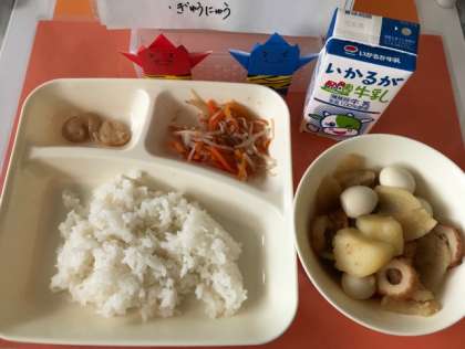 今日の給食の「関東煮」は、「うずら卵」の除去を行うことができる個別対応献立でした。調理の最終工程でうずら卵が入らない除去食を作り、個別対応をしています。