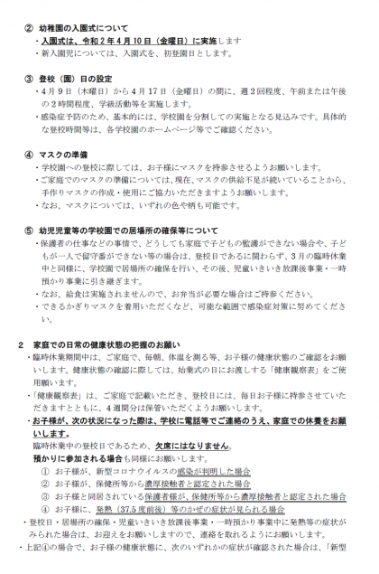 新型コロナウイルス感染症の拡大防止に向けた学校休業について