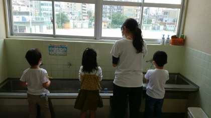 登校日(5月22日) 公開日 2020/05/22 更新日 2020/05/22 お知らせ 5月22日(金)3回目の登校日がありました。1年生は、まだまだ慣れないようで、緊張しながら座っていました。お道具箱や教科書など机の中に入れるものを確認しながら整理していました。そして、手洗いの歌を歌いながら、手洗いの仕方を練習していました。手洗いの習慣をしっかりつけてほしいです。 いいね(0)
