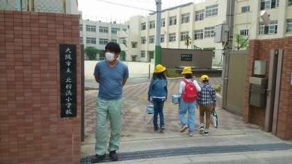 登校日【5月26日(火)】 公開日 2020/05/26 更新日 2020/05/26 お知らせ 5月26日(火)登校日です。分割登校も慣れてきたようで、前半グループと後半グループが入れ替わるときには「頑張ってね」「楽しかったよ」とすれ違いながら声を掛け合う様子が見られました。 1年生は、学習園を見に行きました。他の学年が大切に植えている植物を観察して、自分たちも育てたいという気持ちになったようです。そして、国語の教科書最初にある詩「とん とん とととん」を読みました。 いいね(0)
