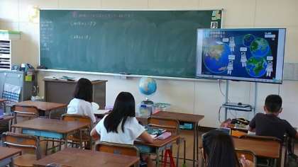 5年生では、宇宙から地球を見た時の世界や日本の様子について考えました。算数では、10分の1、100分の1すると小数点はどのように移動するか復習しました。