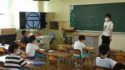 3年生は、社会科で地図記号について学習しています。画面に写っている記号は何かわかりますか。もう一方の学級では国語辞典の使い方について学習しました。今後調べ学習が多くなります。今のうちに使えるようになってほしいです。