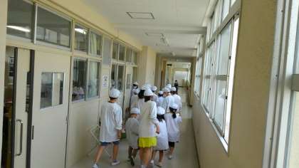 6年生が1年生の給食の用意を手伝ってくれています。今週は、1年生が用意を給食室から運ぶのを、6年生が助けてくれています。来週からは1年生だけで準備しなければなりません。あと1週間、頑張ってほしいです。