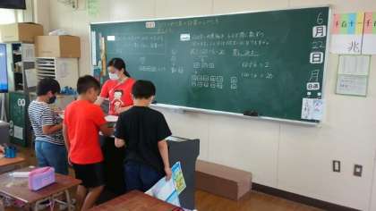 4年生では、 公開日 2020/06/22 更新日 2020/06/22 お知らせ 4年生は、3桁のわり算について考えました。120枚の色紙を6人で同じ数ずつに分けるのに、どのように計算したらよいか見通しを立てて考えました。 いいね(0)