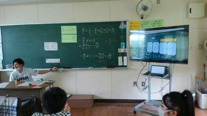 6年生は、算数科で分数×分数の解き方を考えました。図で考える、分数の性質を使う、かけ算の性質を使うなど見通しが出されました。途中の方法が違っても、正しければ答えは同じになることを再確認しました。