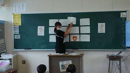 なんばんめ 公開日 2020/07/01 更新日 2020/07/01 お知らせ 1年生は算数科で「なんばんめ」を学習しています。前回「前から何番目ですか」「前に何人いますか」などを習いましたが、難しかったようでした。そこで、今回は初めに「上から(下から)何番目」「右から(左から)何番目」ゲームをして、慣れるようにしました。 算数科でもノートを使い始めました。板書を正しく写せているか、書き終わった後、マス目の残りを数えて確かめます。 いいね(0)